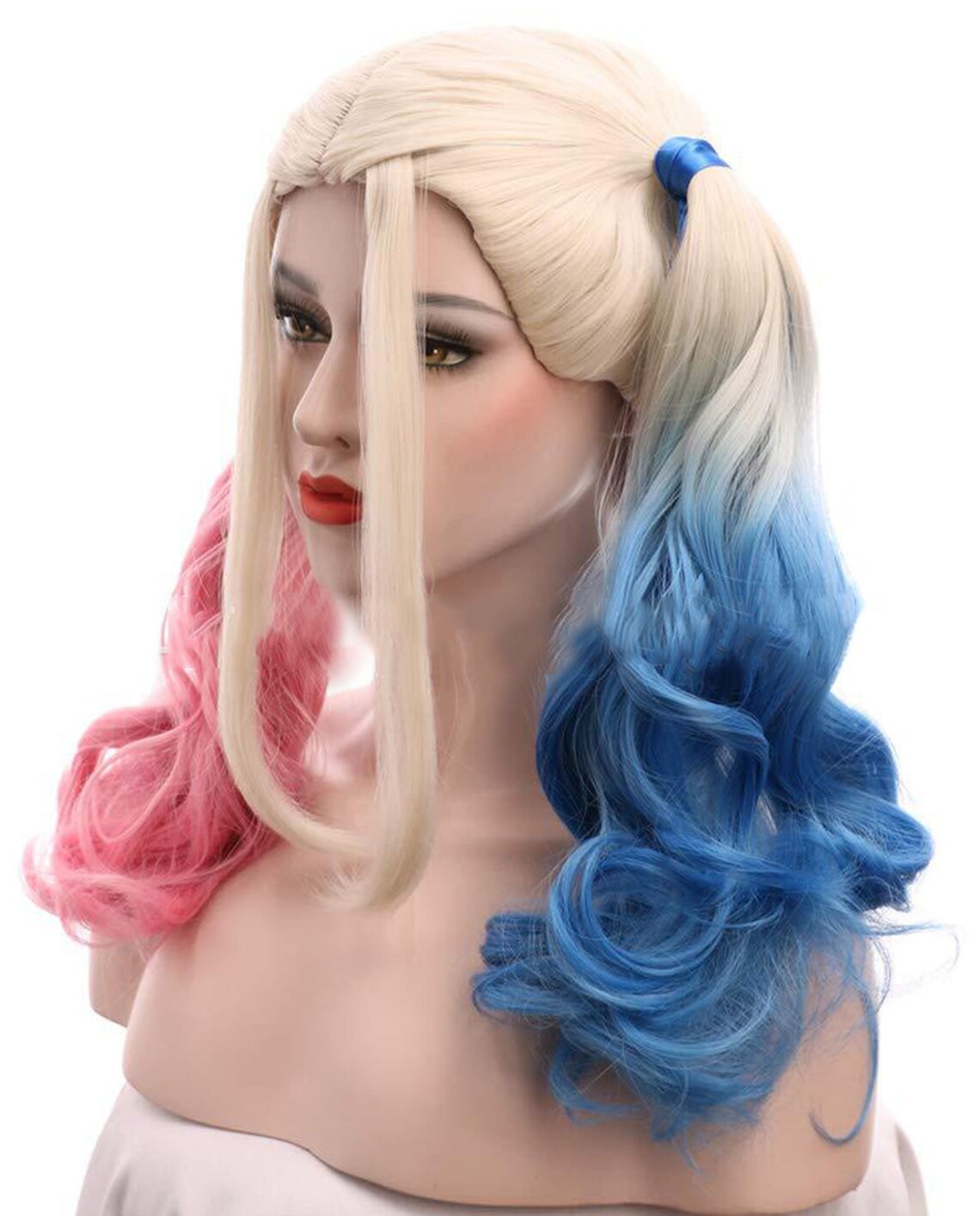 Transform into the ultimate Harley Quinn with this stunning long wig! Featuring the iconic blond, blue and pink color combination that screams Gotham's craziest villain. The natural hairline design looks incredibly realistic and gives you that instant confidence boost. Made from mixed curl fibers that feel soft and comfortable to wear. Flexible enough to fit any head size perfectly. Perfect for Carnival, Halloween, cosplay events, comic conventions or theme parties. Whether you're causing chaos at a party or just having fun with friends, this wig will make you the center of attention. Easy to style and maintain - just shake and go! Become the Harley Quinn everyone remembers!