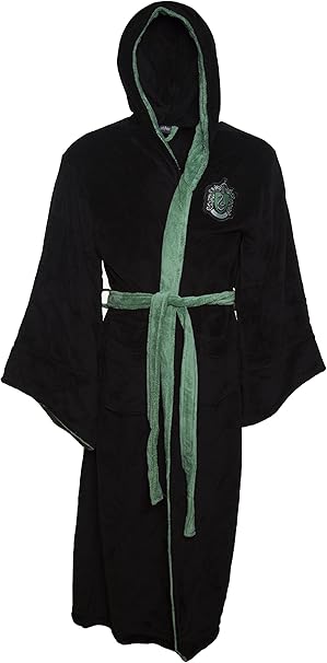Hey Potterheads! Dieser offizielle Harry Potter Slytherin Bademantel ist perfekt für kleine Zauberer! Aus weichem Polyester-Flanell der schön warm hält. Mit praktischer Kapuze und angenähtem Gürtel - super einfach an- und auszuziehen. Perfekte Passform und hoher Tragekomfort für alle Hausaufgaben in Hogwarts! Ideal nach dem Baden, als kuscheliger Morgenmantel oder für gemütliche Filmabende. In Größe XL erhältlich - perfekt für kleine und größere Potter-Fans. Mach deinem Kind eine Freude und lass es in die magische Welt von Harry Potter eintauchen! Einfach überziehen und den Zauber genießen!