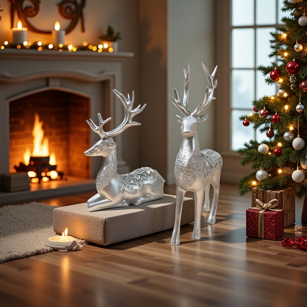 Oh, wie süß! Diese goldenen Rentier-Figuren bringen weihnachtlichen Charme in dein Zuhause. Das 3-teilige Set aus hochwertigem Harz sieht einfach klasse aus - zwei Rentiere stehen, eines kniet. Das goldene Finish mit diesem vintage Holzschnitt-Look ist total im Trend. Perfekt für deine Weihnachtsdekoration auf dem Kaminsims, Esstisch oder Regal. Die Figuren sind ca. 10-13 cm hoch - ideal für dein Winterdorf oder als Highlight zwischen Tannengrün und Lichtern. Super stabil und langlebig, du kannst sie jedes Jahr wieder verwenden. Sie machen nicht nur dein Zuhause gemütlich, sondern sind auch ein tolles Geschenk für Familie und Freunde. Hol dir den Zauber von Weihnachten ins Haus - diese niedlichen Rentiere sorgen für echte Festtagsstimmung und werden sicher zum Eyecatcher!