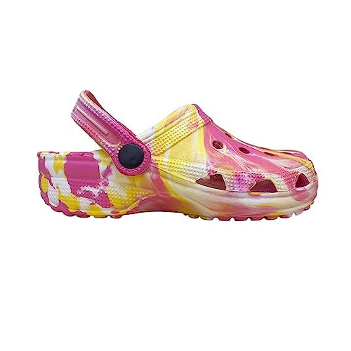 Oh, wie praktisch diese Clogs für Kinder! Aus leichtem Gummi - perfekt für Strand, Pool oder einfach als Hausschuhe. Die rutschfeste Sohle gibt sicheren Halt auch auf nassen Fliesen. Atmungsaktiv und schnell trocknend - keine feuchten Füße mehr. Super einfach an- und auszuziehen - ideal für kleine Füße. In Unisex-Design für Jungen und Mädchen von 4-10 Jahren. Robust und langlebig - hält auch wildem Spielspaß stand. Perfekt für den Sommerurlaub, Schwimmbad oder Garten. Einfach unter den Wasserhahn halten und sauber ist's! Dein Kind wird diese bequemen Clogs lieben und du sparst dir das lästige Schnürsenkel binden. Einfach reinschlüpfen und losrennen - so macht Sommer Spaß!