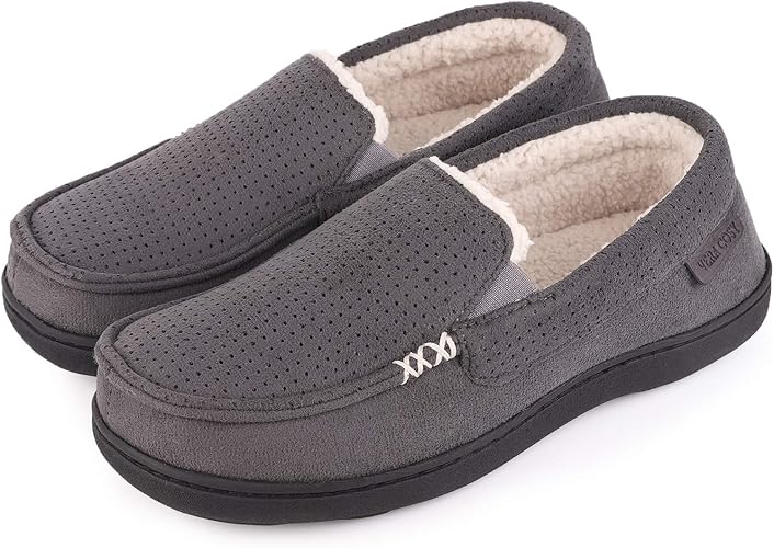 • VeraCosy Herren Hausschuhe Mit Memory Foam - Mikrosuede, Sherpa Futter, Anti-Rutsch Sohle