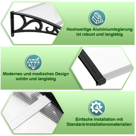 Regnet's bei dir auch immer genau dann, wenn du Besuch erwartest? Mit diesem praktischen Haustürvordach von Melko bleiben deine Gäste auch bei schlechtem Wetter trocken! Das 240x90 cm große Vordach aus robustem Kunststoff schützt zuverlässig vor Regen, Schnee und Hagel. Die elegante Bogenform sieht nicht nur gut aus, sondern leitet das Wasser auch optimal ab. Mit 5,5 mm Stärke ist das Vordach stabil und langlebig, dazu noch UV-beständig und lichtdurchlässig. Die Montage ist denkbar einfach - das komplette Montagematerial liegt bei! Durch das clevere Stecksystem kannst du das Vordach bei Bedarf sogar in der Breite erweitern. Perfekt nicht nur für Haustüren, sondern auch für Balkontüren, Schaufenster oder Garageneingänge. Das witterungsbeständige Material hält jahrelang der Sonne und Kälte stand ohne zu verblassen oder zu verformen. Und ein netter Nebeneffekt: Im Sommer hält das Vordach die Hitze draußen und kann so sogar deine Klimakosten senken! Verleihe deinem Zuhause mehr Charme und deinen Gästen einen trockenen Empfang - egal bei welchem Wetter!