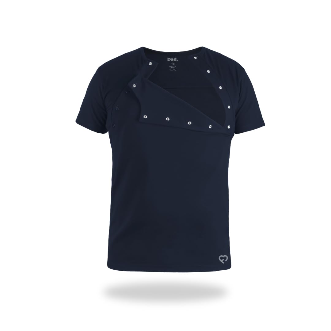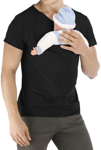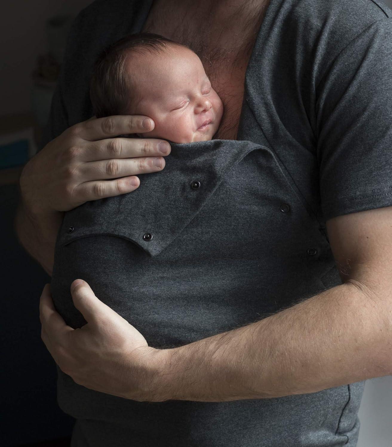 Jetzt sind die Väter dran! Dieses spezielle Bonding-T-Shirt ermöglicht dir den engen Haut-zu-Haut Kontakt mit deinem Baby - genau wie bei der Känguru-Methode. Das Material (95% Baumwolle, 5% Elasthan, 190g) ist super weich und angenehm für beide. Die praktischen Einschubschlitze mit Snap-Verschlüssen aus antiallergischem Metall machen's möglich: Baby einfach auf die nackte Brust setzen und die Bindung stärken. Wissenschaftlich erwiesen: Senkt den Stresspegel beim Baby, fördert besseren Schlaf und hilft sogar bei Bauchweh! Perfekt für die Zeit nach der Geburt, besonders wenn Mama sich erholen muss. Das Shirt wird in Polen aus zertifizierten Materialien (Oeko-Tex Standard 100) gefertigt - sicher für die zarte Babyhaut. Wichtig: Dient nur zum Bonding, nicht als Babytrage! Gib deinem Kind die Nähe, die es braucht und genieße die besonderen Momente - 15 Minuten können Wunder wirken für eure Bindung und die Entwicklung deines Kleinen.