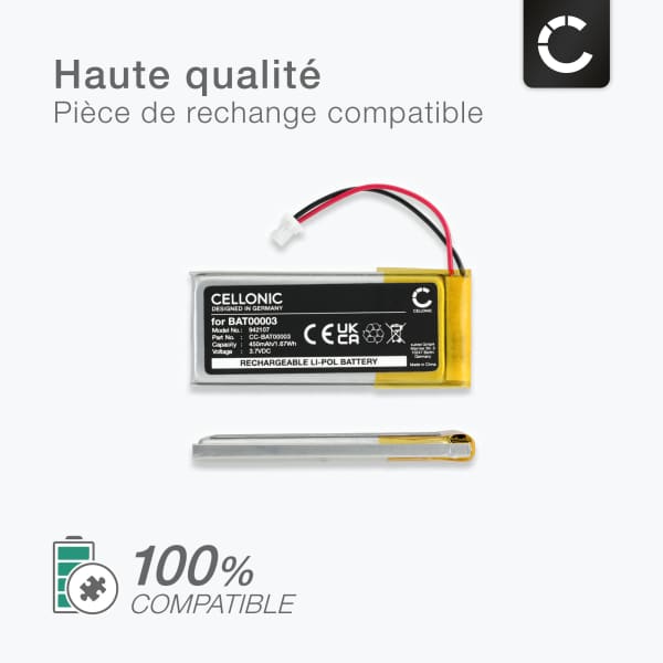 Perfekter Ersatzakku für dein Cardo Headset! Mit satten 450mAh liefert dir dieser Li-Polymer Akku genug Power für lange Motorradtouren. Super einfach zu wechseln und passt wie die Original-Batterie. Technische Daten: 3.7V Spannung, nur 10g leicht und in schwarzer Farbe. Kompatibel mit Cardo Q1, Q3, Rider FM, Rider Solo und Scala Rider Q3 Modellen. Ersetzt den originalen BAT00003 Akku - ideal wenn dein aktueller Akku schlapp macht. Perfekt für alle, die nicht wegen schwacher Batterie auf ihr Headset verzissen wollen! Einfach einsetzen und wieder volle Freiheit beim Fahren genießen. Das beste: Kein langes Suchen nach dem passenden Ersatzakku mehr - dieser hier passt perfekt und ist sofort einsatzbereit. Für ununterbrochenen Fahrspaß ohne Kompromisse!