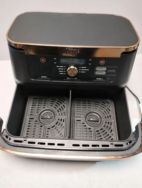 Die Ninja FlexDrawer ist keine gewöhnliche Heißluftfritteuse - sie ist ein echter Küchen-Alleskönner! Mit der einzigartigen Dual Zone Technologie kannst du zwei verschiedene Speisen gleichzeitig zubereiten - jede Zone mit eigenen Einstellungen. Oder nimm die Trennwand raus und du hast eine große 6,6-Liter MegaZone für Familienmahlzeiten - sogar ein 1,6 kg Braten passt rein! 6 Funktionen in einem Gerät: Air Fry (Heißluft-Frittieren), Max Crisp, Backen, Braten, Dörren und Aufwärmen. Bis zu 75% weniger Fett als herkömmliches Frittieren - gesünder geht's kaum! Spart bis zu 55% Energie gegenüber Backöfen und ist bis zu 55% schneller. Die 6,6-Liter Schublade, Trennwand und 2 Crisper-Gitter sind antihaftbeschichtet und spülmaschinenfest - super easy zu reinigen. Perfekt für kleine Küchen - erspart dir viele einzelne Geräte. Mit Rezeptheft für sofortigen Kochspaß. Also, wenn du clever kochen willst - hier ist deine Lösung!