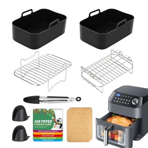 Mach deine Ninja Heißluftfritteuse zum Alleskönner! Dieses Mega-Set mit 65 Teilen passt perfekt für AF400EU, AF451EU, AF300EU Modelle (7,6-9,5L). Enthält Silikon-Backformen (20,5x15x7cm), Edelstahl-Rost, 50 Backpapiere, Spießhalter mit 4 Spießen, Toastblech, Handschuhe und mehr. Alles BPA-frei und hitzebeständig bis 240°C. Jetzt kannst du backen, grillen, frittieren - alles mit einem Gerät! Super einfach zu reinigen, spülmaschinengeeignet. Perfektes Geschenk für Kochfans. Endlich mehr Abwechslung aus deiner Heißluftfritteuse - von Pizza über Kebab bis zu Kuchen!