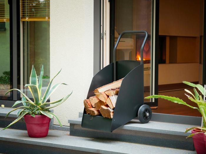 Servus! Der Heibi Kaminholzwagen macht das Schleppen von Feuerholz zum Kinderspiel. Aus stabilem, pulverbeschichtetem Stahl in schickem schwarz Glimmer bietet er jede Menge Platz für dein Kaminholz. Mit den Maßen 52x43x95 cm (BxTxH) findest du bestimmt den perfekten Platz dafür in deinem Zuhause. Die beiden großen Kunststoffräder sind das absolute Highlight - die rollen nicht nur gut auf glattem Boden, sondern meistern sogar Treppenstufen! So musst du das Holz nicht mehr mühsam tragen, sondern kannst es bequem von A nach B schieben. Der Wagen wiegt etwa 22 kg und ist richtig stabil und standfest. Da wackelt nichts, auch wenn er voll beladen ist. Perfekt für den Einsatz am Kamin, im Garten oder auch im Wald - überall dort, wo du Holz transportieren musst. Die pulverbeschichtete Oberfläche ist robust und langlebig, sodass dir der Wagen lange Freude bereitet. Und das schicke schwarz Glimmer Design sieht dazu noch richtig edel aus. Ob im Wohnzimmer, Wintergarten oder draußen auf der Terrasse - dieser Holzwagen ist nicht nur praktisch, sondern auch ein echter Hingucker. Hol dir mehr Komfort in dein Zuhause und verabschiede dich vom mühsamen Holzschleppen!