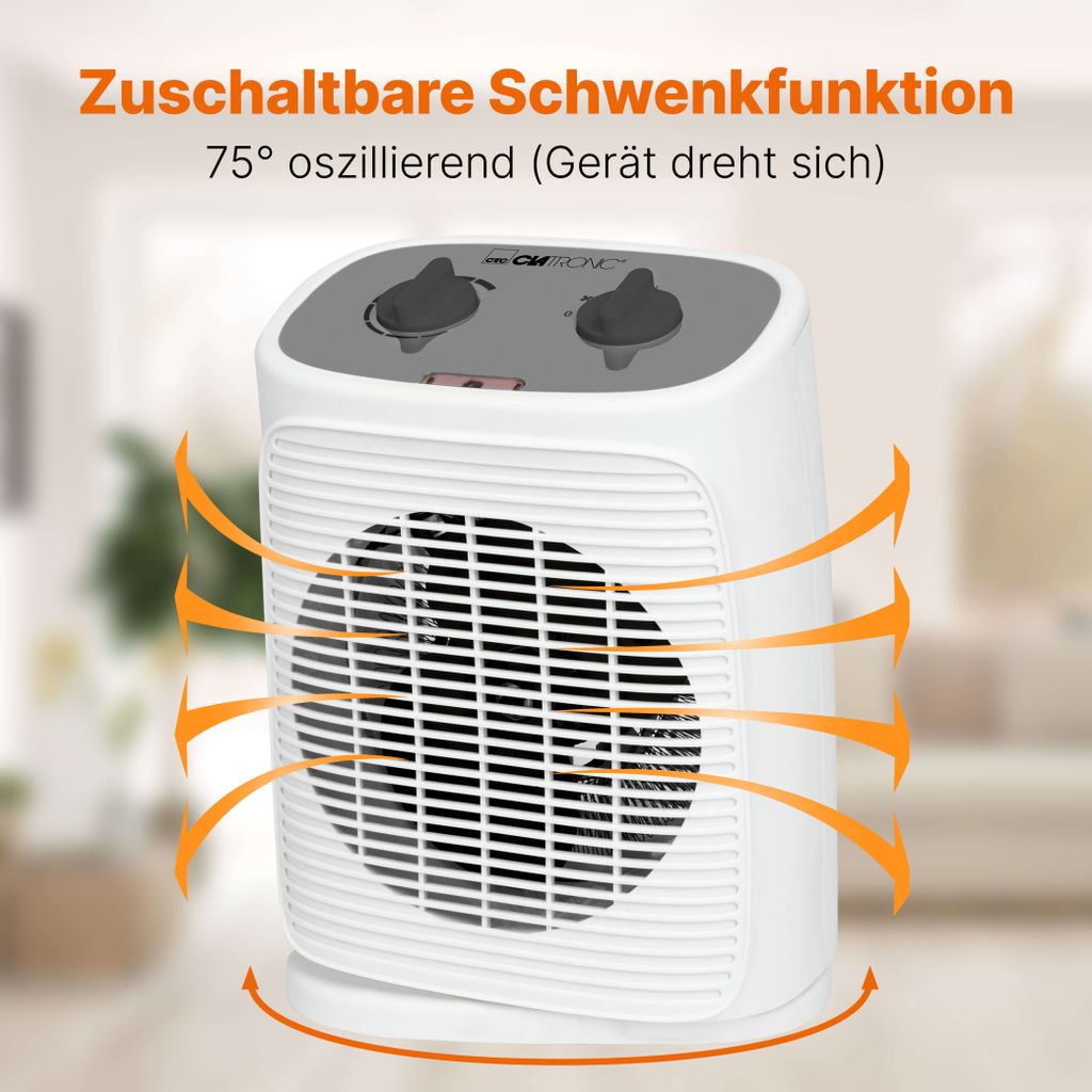 Brrr, ist das kalt? Dieser Clatronic Heizlüfter bringt dich sofort auf Temperatur! Mit satten 2000 Watt heizt er jeden Raum im Nu auf - oder wähl einfach die sparsame 1000 Watt Stufe für gemütliche Wärme. Das coole Feature: Er hat auch eine Ventilator-Funktion ohne Heizung, also kannst du ihn sogar im Sommer nutzen! Das stufenlose Thermostat lässt dich die Temperatur genau einstellen, wie du es magst. Und keine Sorge vor Überhitzung - der integrierte Sicherheitsschutz schaltet automatisch ab, wenn's zu heiß wird. Mit zwei Aufstellmöglichkeiten und praktischem Tragegriff kannst du ihn überall hin mitnehmen - ins Homeoffice, Badezimmer oder Wohnzimmer. Kompakt, leicht und super effizient. Perfekt für kalte Wintertage oder wenn die Heizung mal nicht reicht. Einfach einstecken und schon wirst du von wohliger Wärme umhüllt!