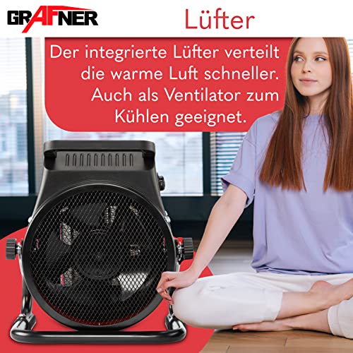 Brrr, ist das kalt! Der DAHTEC Industrie-Heizlüfter bringt schnell Wärme in jeden Raum. Mit stolzen 3000 Watt Heizleistung und Edelstahl-Heizelementen wärmt er auch große Flächen im Nu. Drei Stufen zur Auswahl: 25W nur Lüfter, 1500W oder volle Power mit 3000W. Perfekt für Werkstätten, Garagen, Lagerhallen, Baustellen oder auch größere Wohnräume. Mehrfache Sicherheitsfeatures geben dir Ruhe: Thermostat, Kipp- und Überhitzungsschutz, verzögerter Lüfterstopp und IP24 Schutzklasse gegen Spritzwasser. Der wärmeisolierte Griff und das robuste 1,60 m lange Kabel machen die Handhabung super sicher. Rutschfeste Kunststofffüße sorgen für stabilen Stand auch auf unebenen Böden. Der praktische Tragegriff ermöglicht einfachen Transport von Raum zu Raum. Ob zum Aufheizen der Garage vor der Werkarbeit, zum Trocknen von Baustellen oder als mobile Heizlösung im Gewächshaus - dieser Heizlüfter ist dein vielseitiger Helfer. Ausführliche Anleitung und Online-Videoanleitungen helfen bei der Nutzung. Bei Fragen einfach den DAHTEC Support kontaktieren - schnelle Hilfe garantiert! Nie wieder frieren mit diesem professionellen Heizgerät für anspruchsvolle Einsätze.