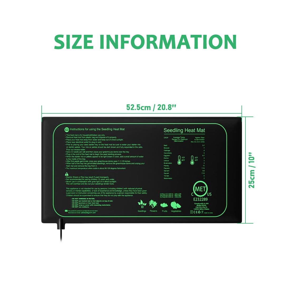 Pflanzenliebhaber und Reptilien-Besitzer, diese Heizmatten sind echte Allrounder! Im 2er-Set - doppelt hilft besser! \\n\\nMaße: 25x52,5cm - perfekt für Anzuchtschalen, Terrarien oder Aquarien! Mit 21W Leistung - effizient und energiesparend! \\n\\nErhöht die Wurzeltemperatur um 10-25°C über der Umgebung! Perfekt für die Keimung von Gemüse, Kräutern und Blumen! \\n\\nIP67 wasserdicht - absolut sicher bei Feuchtigkeit! Aus hochwertigem PVC mit Silikondraht - langlebig und zuverlässig! \\n\\nHeiztemperatur ca. 40°C - ideal für die meisten Pflanzen und Reptilien! Gleichmäßige Wärmeverteilung garantiert! \\n\\nEuropa-Stecker mit 150cm Kabel - praktische Länge! Einfach ausrollen und einstecken - sofort einsatzbereit! \\n\\nAuch super für die Bierherstellung und Gärprozesse! Vielseitig im Haushalt einsetzbar! \\n\\nAchtung: Nicht in Wasser eintauchen! Ansonsten absolut sicher im Betrieb! \\n\\nHol dir diese praktischen Heizmatten und unterstütze das Wachstum deiner Pflanzen optimal!