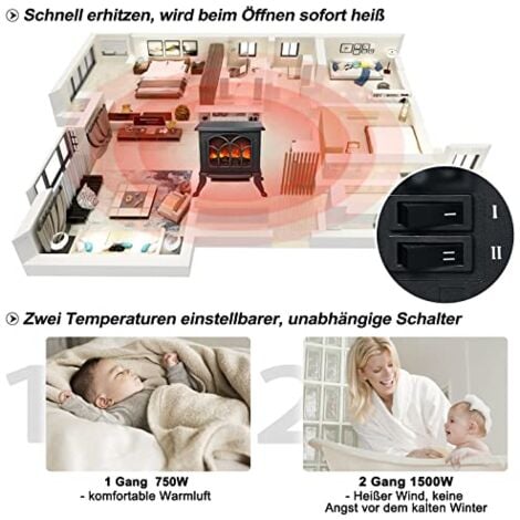 Boah, dieser Elektrokamin bringt richtig gemütliche Atmosphäre in dein Wohnzimmer! Der realistische Flammeneffekt mit LEDs sieht aus wie echtes Feuer - aber ganz ohne Rauch und Asche. Mit der Heizfunktion (750W oder 1500W einstellbar) wärmst du im Winter deinen Raum super effizient. Das Beste: Flamme und Heizung gehen auch separat - im Sommer kannst du also nur den optischen Kamineffekt genießen. Mit den Maßen 40,5x24x45 cm ist der Kamin kompakt und passt in fast jede Ecke. Die PTC-Heiztechnologie ist sicher, langlebig und heizt schnell auf. Und das Ganze bei nem super leisen Betrieb - perfekt für gemütliche Filmabende oder romantische Stunden. Einfach anstecken und sofort loslegen! Kein Schornstein, keine Genehmigung - nur pure Gemütlichkeit. Der Kamin steht frei und kann flexibel platziert werden. Einfach genial!