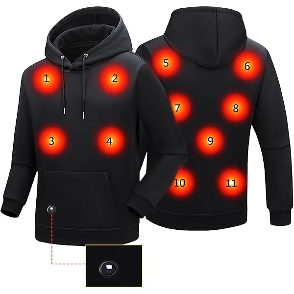 Winter? Kein Problem! Dieser beheizbare Hoodie hält dich richtig warm. Mit 5 Heizzonen an Bauch und Rücken - einfach per Knopf zwischen 3 Temperaturen (25-55°C) wählen. Aus weichem Polyester-Baumwolle-Mix - bequem und atmungsaktiv. Braucht eine Powerbank (nicht im Lieferumfang) - hält bis zu 4 Stunden warm. Waschbar (vorher Powerbank entfernen!). Perfekt für Ski, Angeln, Outdoor oder einfach kalte Tage. Sieht stylisch aus und wärmt richtig gut - endlich muss man nicht mehr frieren!