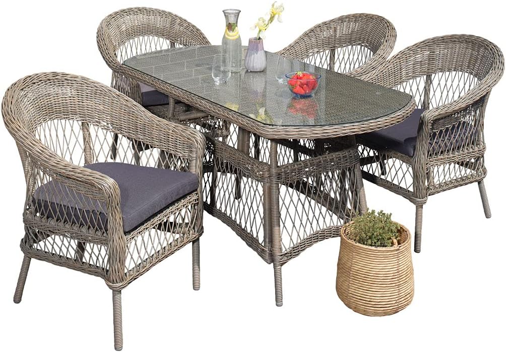 • Garten Sitzgruppe Bilbao Hellgrau - 7-teiliges Polyrattan Set Für Terrasse & Balkon