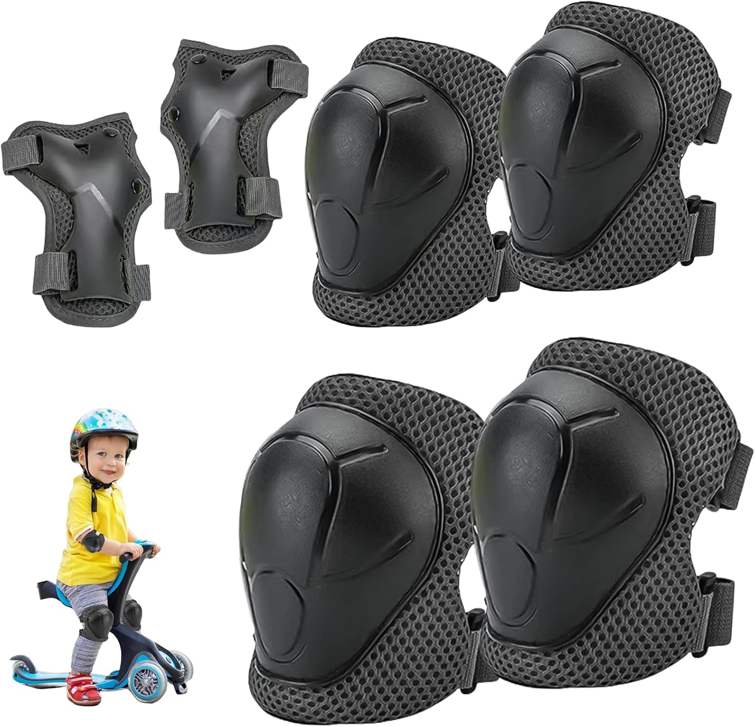 Deine Kinder lieben es, mit dem Fahrrad zu fahren, Inliner zu laufen oder Skateboard zu fahren? Dieses komplette Schutz-Set gibt dir die nötige Sicherheit! Im Set enthalten: Ein verstellbarer Helm (für Kopfumfang 48-54cm, also für Kinder von 3-10 Jahren), zwei Knieschoner, zwei Ellbogenschoner und zwei Handgelenkschoner - also alles, was dein Kind braucht! Der Helm hat eine weiche Polsterung für extra Komfort und ist super leicht. Alle Schoner haben eine robuste PVC-Außenschale und weiche EVA-Polsterung für optimalen Aufprallschutz. Die verstellbaren elastischen Bänder (passend für 15-40kg) sorgen für perfekten Sitz ohne zu zwicken. So kann dein Kind sich frei bewegen und hat trotzdem maximalen Schutz. Perfekt für Fahrrad, Inliner, Skateboard, Roller - eigentlich für alle Sportarten, bei's mal hinfallen kann. Ein super Geschenk für Geburtstage, Weihnachten oder einfach so! Dein Kind wird den coolen Look lieben und du hast ein ruhigeres Gewissen. Einfach anziehen und los geht's - sicher und mit viel Spaß!