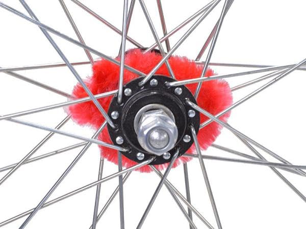 Das Chenilledraht-Material (französisch für 'Raupe') ist weich und entfernt super einfach Staub und Dreck von deinen Nabenscheiben. Die knalligen Farben geben deinem Bike außerdem einen individuellen Look.