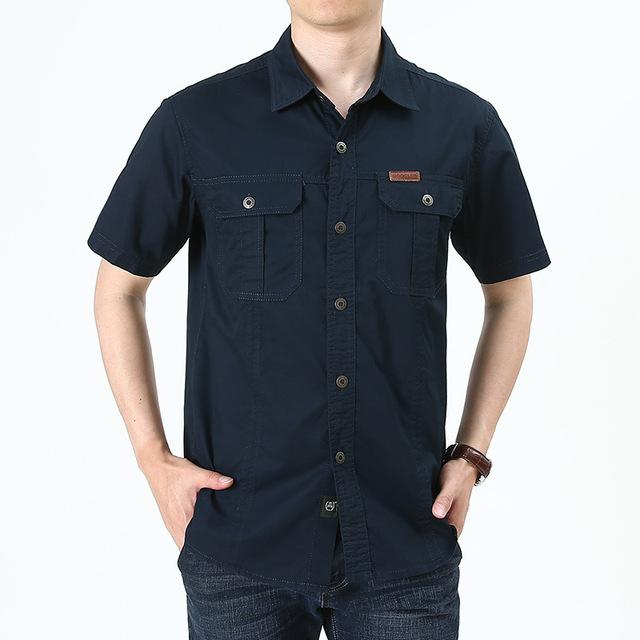 Herren Hemd Kurzarm - Baumwoll-Polyester Bluse Mit Druckknöpfen