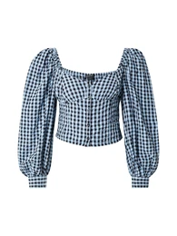 • Trachtenbluse Damen Karo - Langarm Hemd Mit V-Ausschnitt Für Oktoberfest