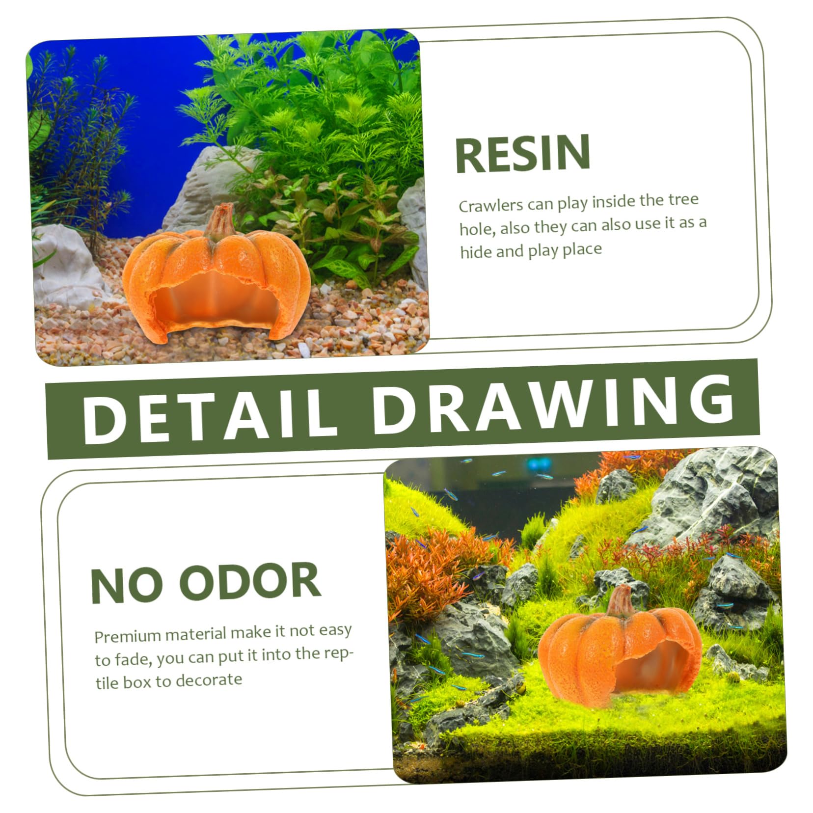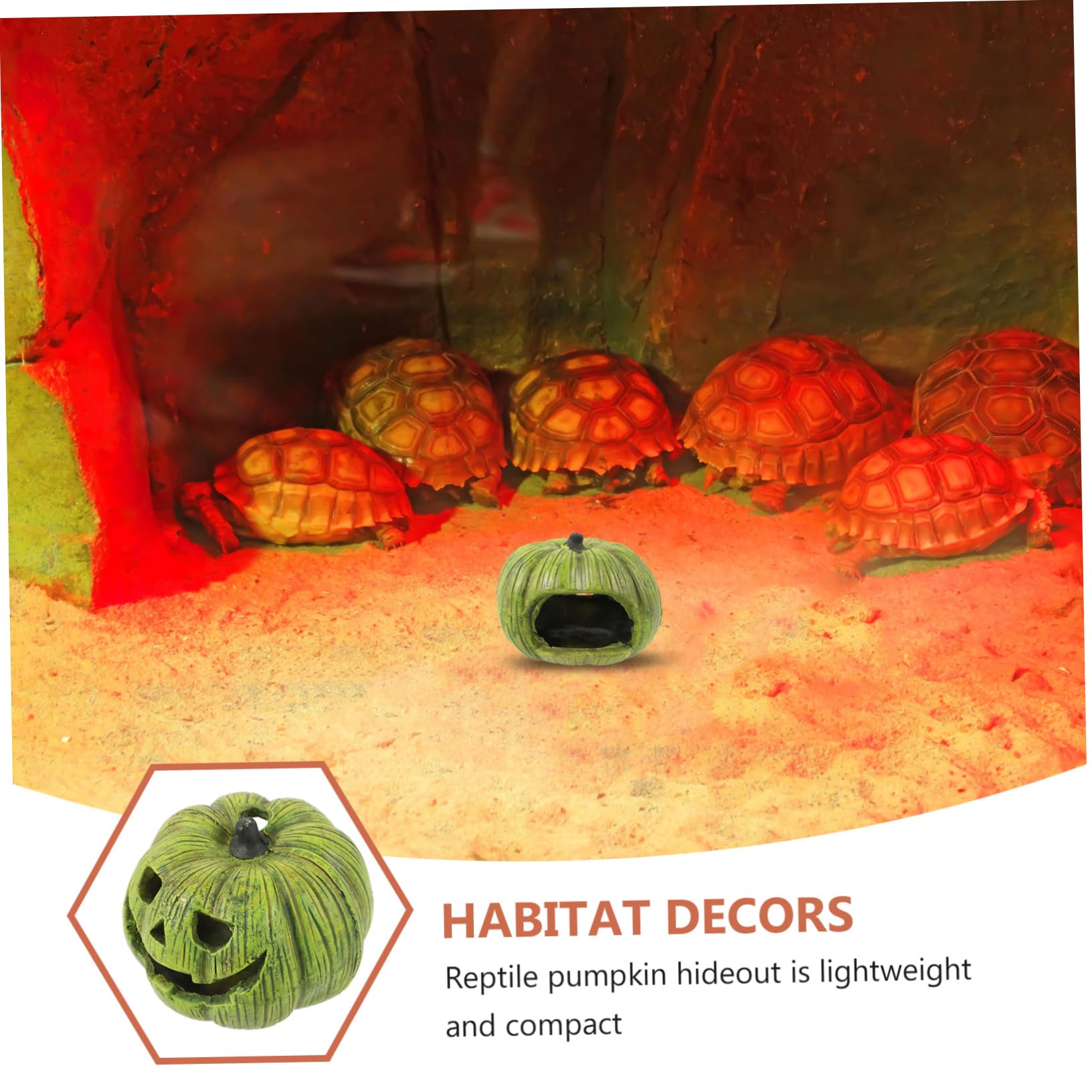 So macht Terrarium-Deko richtig Spaß! Die süße Kürbis-Höhle ist der perfekte Rückzugsort für deine kleinen Mitbewohner. Ob für Schlangen, Echsen, Schildkröten oder Hamster - hier fühlen sie sich pudelwohl! Aus umweltfreundlichem Harz, das nicht so schnell verblasst. Mit 11x9,5x11cm ist sie groß genug für die meisten kleinen Reptilien, aber nicht zu dominant im Terrarium. Die Details sind richtig liebevoll gemacht - man sieht jeden kleinen Kürbis-Ritz! Perfekt für die Herbst- und Halloween-Zeit, aber eigentlich das ganze Jahr über ein Hingucker. Einfach ins Terrarium stellen und deine Tiere werden es sofort annehmen. Auch super als Deko fürs Aquarium - da freuen sich die Fische über ein neues Versteck. Mach dein Terrarium zur gemütlichen Wohlfühloase!