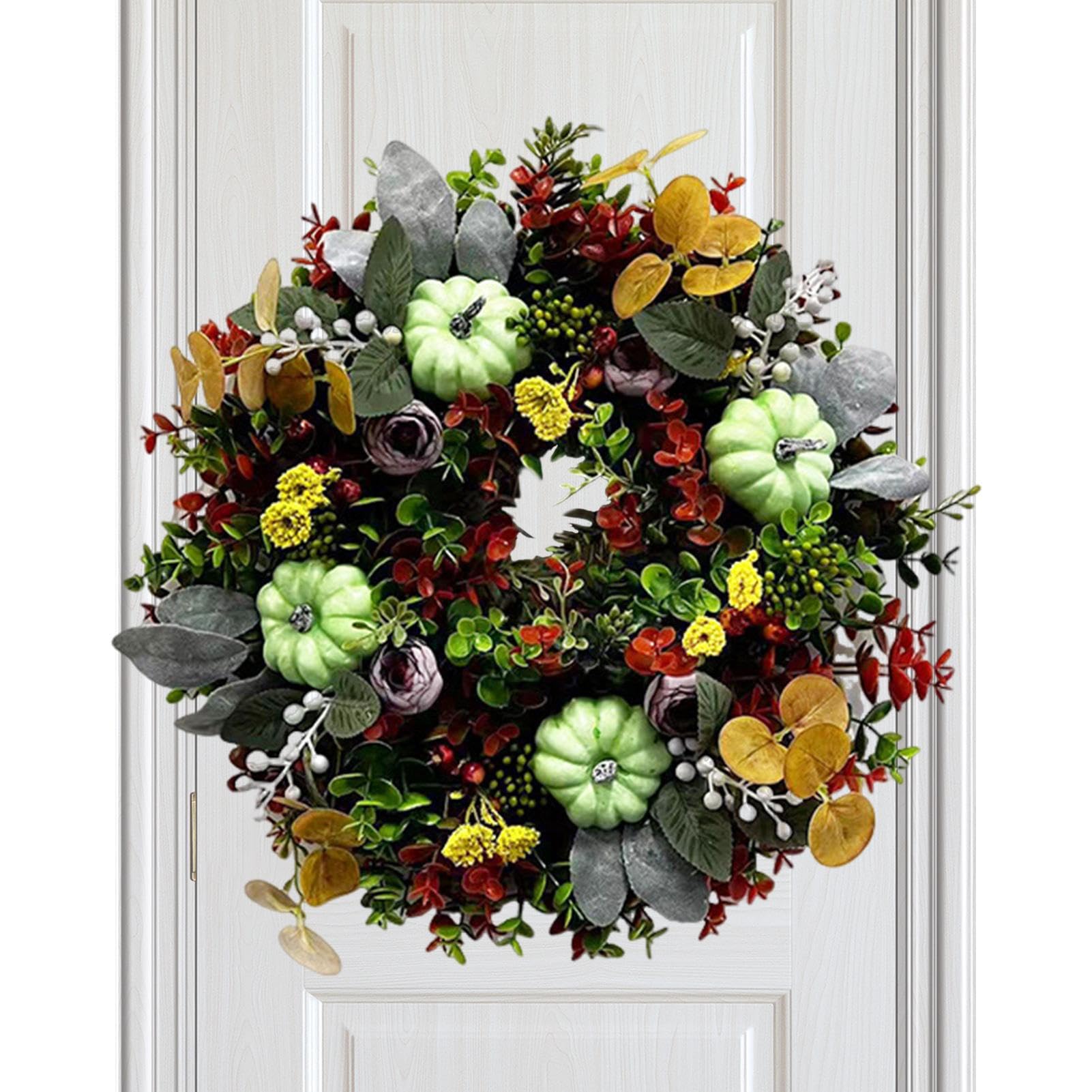 Mach deine Haustür herbstlich mit diesem süßen 30cm Kranz! Der ist voller kunterbunter Herbst-Elemente: Rote Ahornblätter, niedliche Kürbisse, Beeren und sogar Kiefernzapfen. Alles aus Kunststoff, sieht aber täuschend echt aus! Perfekt für Thanksgiving, Halloween oder einfach so für die gemütliche Jahreszeit. Wenn nach dem Transport mal was verrutscht ist, einfach wieder zurechtbiegen - kein Problem! Aufhängen kannst du ihn überall: An der Tür, am Fenster, überm Kamin oder als Tischdekoration. Schafft sofort diese gemütliche Herbst-Atmosphäre die man liebt! Einfach aufhängen und dich an den warmen Farben erfreuen - deine Gäste werden begeistert sein! Genau das richtige für alle die ihr Zuhause herbstlich schmücken wollen!