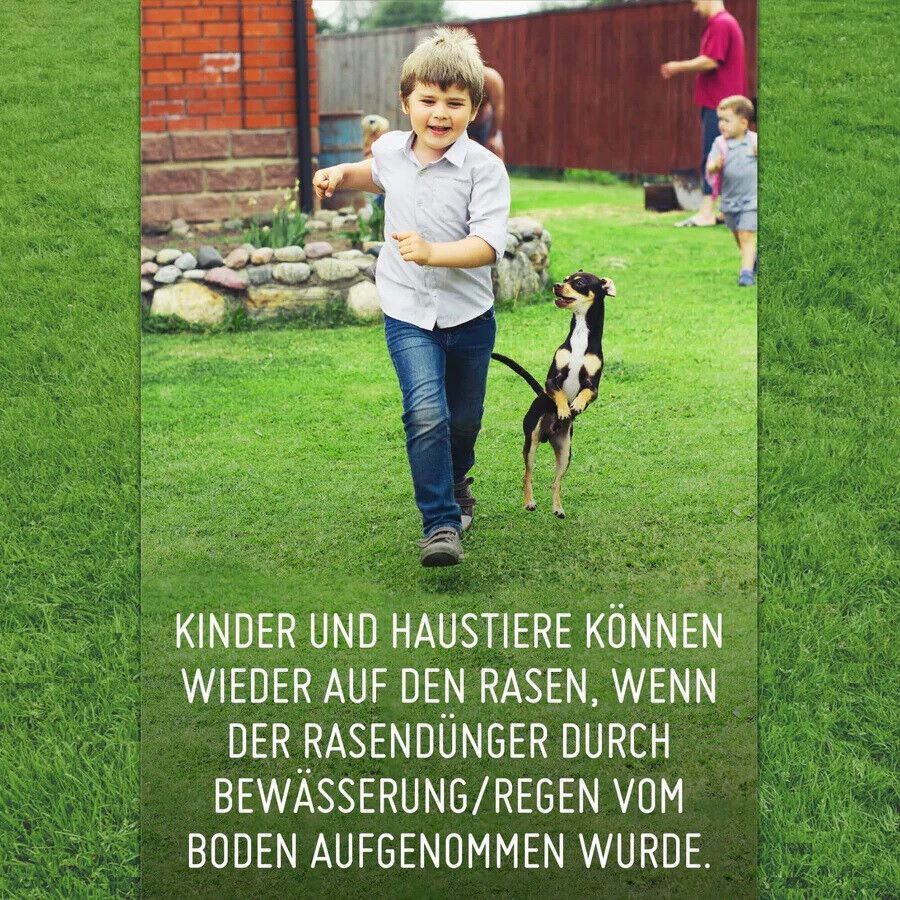 Bereite deinen Rasen optimal auf den Winter vor! Dieser Herbstrasendünger mit 2,5 kg Inhalt reicht für ca. 125 m² und stärkt deinen Rasen für die kalte Jahreszeit. Mit der NPK-Formel 6+3+20 versorgt er deinen Rasen mit sofort verfügbaren Nährstoffen und reichlich Kalium für frostfeste Zellwände. Das beste: Er verdrängt Moos und Unkraut auf natürliche Weise, indem er den Rasen so kräftig macht, dass Unkraut keine Chance hat! Die grobe Körnung (2-5 mm) ist perfekt für Streuwagen und Handstreuer. Einfach bei Temperaturen zwischen 10-20°C auf feuchtem, gemähtem Rasen ausbringen (20-30g/m²) und leicht nachwässern. Nach 24 Stunden Einwirkzeit ist der Dünger sicher für Kinder und Haustiere! Im Lieferumfang sind sogar Gartenmesser und Handschuhe enthalten - alles, was du für die einfache Anwendung brauchst. So bekommst du einen dichten, sattgrünen Rasen, der auch den Winter gut übersteht. Einfach ausstreuen, wässern und dich im nächsten Frühjahr über einen vitalen Rasen freuen! Perfekt für alle, die ihren Rasen natürlich und nachhaltig pflegen wollen.