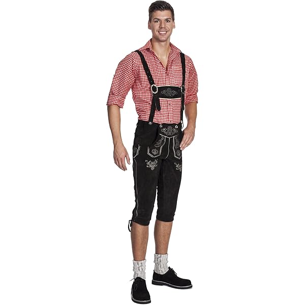 Die kunstvollen Stickereien an den Beintaschen und dem Latz sind typisch bayerisch und zeigen echte Handwerkskunst. Die klassischen H-förmigen Hosenträger mit Metallschnallen sorgen für perfekten Halt und lassen sich individuell anpassen.