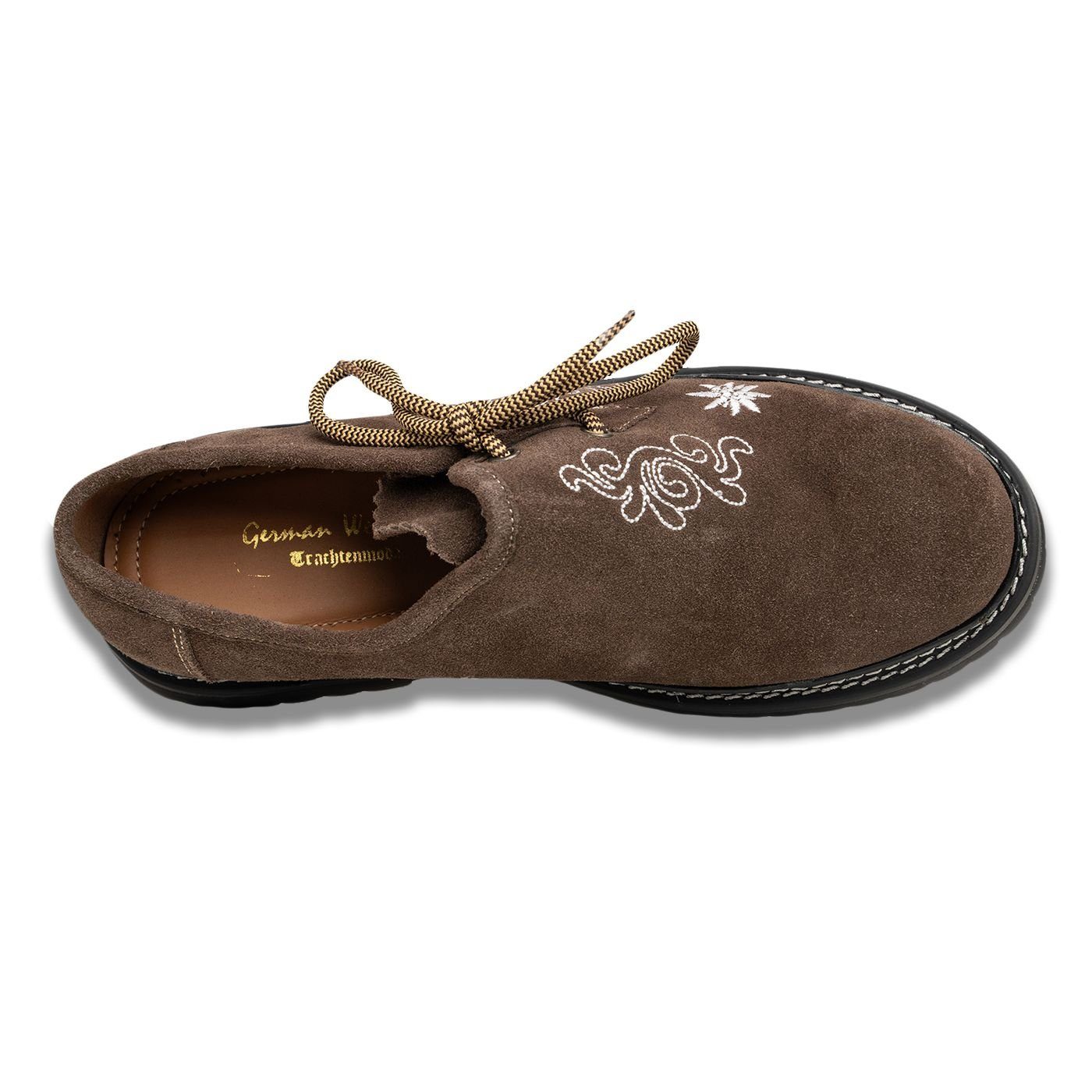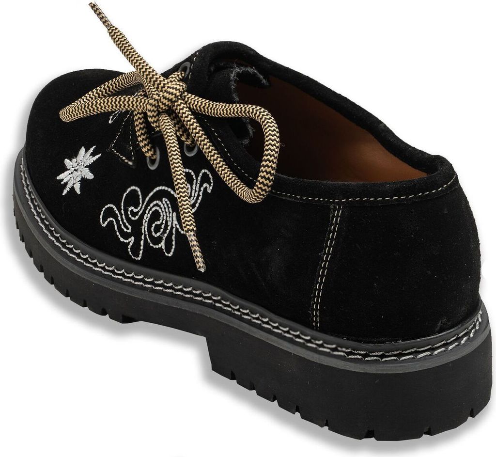 Die seitliche Schnürung verleiht den Schuhen den typischen Trachten-Charakter, während die durchdachte Passform für ganztägigen Tragekomfort sorgt.
