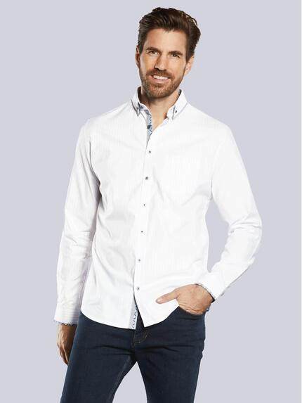 Stylish durch den Business-Alltag! Dieses elegante Langarm-Hemd von engbers ist dein perfekter Begleiter für jeden Anlass. Mit dezent glänzender Baumwolle und feinen Streifen wirkt es besonders edel und professionell. Der Comfort-Stretch-Anteil sorgt für maximale Bewegungsfreiheit - ob bei wichtigen Meetings oder langen Arbeitstagen. Der unterlegte Kragen und die einzigartigen Knöpfe verleihen dem Hemd das gewisse Etwas. Besonders praktisch: Es passt sowohl zum Business-Outfit als auch lässig mit gekrempelten Ärmeln zur Jeans. Die kontrastreichen Details machen dieses Hemd zu einem echten Hingucker in deinem Kleiderschrank. Perfekt fürs Büro, Geschäftstermine oder auch für den after-work Drink. Hochwertige Verarbeitung garantiert Langlebigkeit und guten Sitz. Suchst du ein Hemd, das immer passt und in jeder Situation gut aussieht? Dann ist 'My Favorite' genau die richtige Wahl für dich. Mach dich bereit für Komplimente!