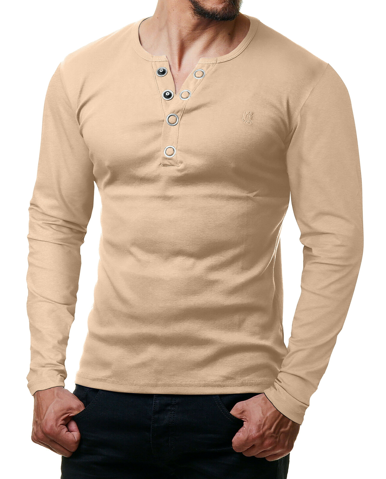 • Oanviso Herren Langarmshirt - Henley Shirt Mit Knopfleiste Slim Fit