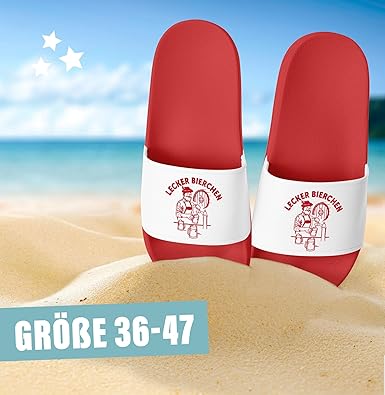 Alter, diese MoonWorks Badelatschen sind der absolute Hammer für jeden Urlaub! Mit witzigen Sprüchen wie 'Don't worry be soffen' oder 'Schere, Stein, paar Bier' sorgst du garantiert für Lacher am Pool. Perfekt für Malle, Festival oder den nächsten Junggesellenabschied! Aus 100% PVC sind sie nicht nur super robust, sondern auch wasserfest und super bequem. Die rutschhemmende Sohle macht auch nassen Fliesen keinen Angst - ideal für Hotelzimmer und Poolbereich! Mit ca. 500g Gewicht sind sie leicht und praktisch für unterwegs. Einfach reinschlüpfen und die Urlaubsstimmung genießen! Das coole Design mit dem Bier-Motiv zeigt, dass du weißt, wie man richtig feiert. Perfekt als Geschenk für Kumpels oder einfach für dich selbst - damit wird jeder Tag am Strand zum Party-Erlebnis!