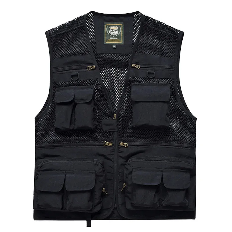 Praktisch muss sie sein! Diese ärmellose Cargo-Weste für Herren ist dein perfekter Begleiter für Outdoor-Aktivitäten. Aus einer Nylon-Elasthan-Mischung gefertigt, ist sie leicht, dehnbar und trocknet schnell - ideal wenn's mal feucht wird. Das Design ist voll auf Funktionalität ausgelegt: Zahlreiche Taschen bieten Stauraum für alles, was du unterwegs brauchst. Ob beim Angeln, Reisen, Fotografieren oder Arbeiten - alles wichtige ist griffbereit. Der durchgehende Reißverschluss vorne und das Bandkragen-Design geben ihr einen lässigen, aber funktionalen Look. Atmungsaktiv und winddicht hält sie dich bei verschiedenen Wetterbedingungen komfortabel. Perfekt für Motorradfahrer, Outdoor-Enthusiasten, Angler oder einfach für alle, die ihre Hände frei brauchen aber trotzdem ihre Utensilien dabei haben wollen. In schwarzer Farbe, die zu allem passt. Mit nur 300g Gewicht ist sie kaum spürbar aber enorm praktisch. Ein echter Allrounder für Abenteuer und Alltag - einfach überziehen und losziehen!
