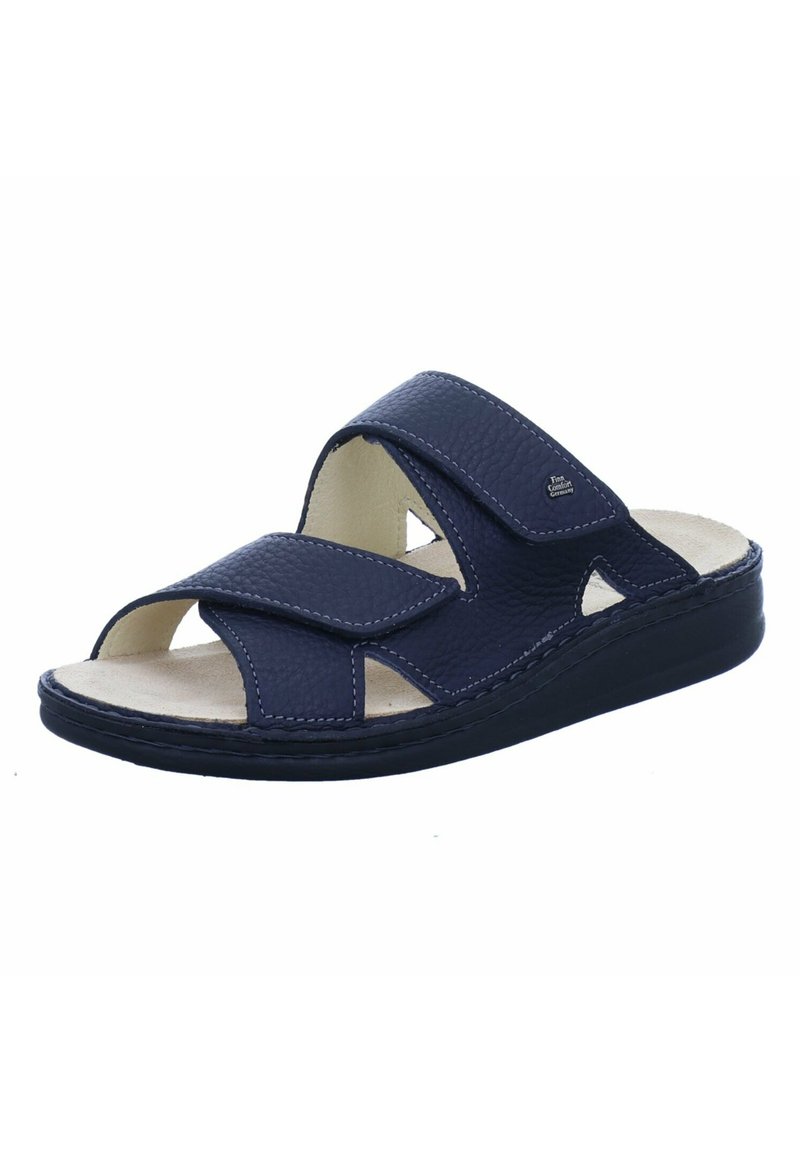 Wahre Wohlfühl-Pantoffeln für anspruchsvolle Füße! Der Finn Comfort Paterna in tiefem Blau bietet mit Weite L extra viel Platz für kräftige Füße. Aus edlem Glattleder gefertigt, sorgt das anatomische Wechselfußbett für optimalen Komfort. Zwei breite Klettverschlüsse garantieren perfekten Halt und einfaches Anziehen. Die stoßdämpfende PU-Sohle schont Gelenke und Rücken bei jedem Schritt. Ob zu Hause, im Hotel oder unterwegs - diese Pantoffeln sind deine treuen Begleiter für gesunde, entspannte Füße. Deutsche Qualität, die man spürt!