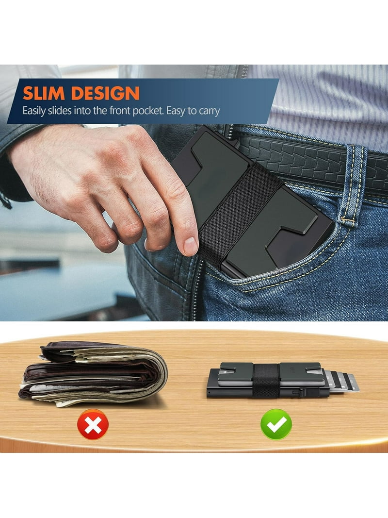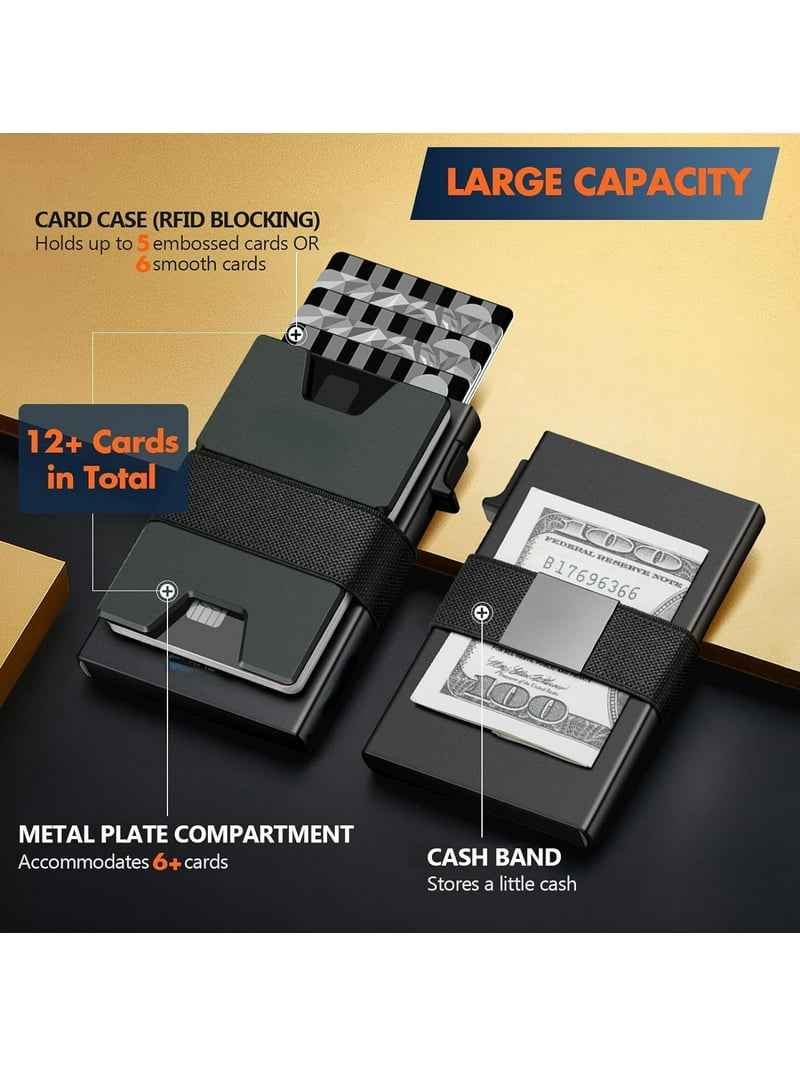 Modernes Kartenetui mit cleverem Pop-Up-Mechanismus! Drück den Seitenschalter und deine Karten kommen gestaffelt heraus. Hält bis zu 12 Karten plus Bargeld. Aus robustem Aluminium mit RFID-Schutz gegen digitalen Diebstahl. Nur 1cm dick und 80g leicht - passt in jede Hosentasche. Mit erweiterbarer Rückplatte und elastischem Geldfach. In edler Geschenkbox - perfekt für Männer und Frauen zu besonderen Anlässen. 30 Tage Rückgabe und 1 Jahr Garantie.