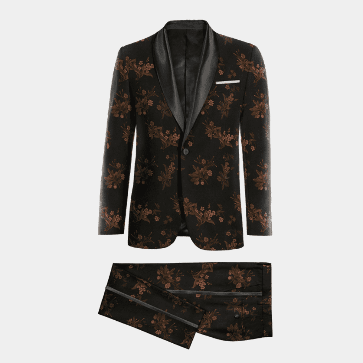 Siehst du aus wie aus dem Ei gepellt! Dieses 3-teilige Smoking-Set mit dezentem Blumenmuster macht jeden Mann zum Gentleman. Jacke, Weste und Hose sind perfekt aufeinander abgestimmt.