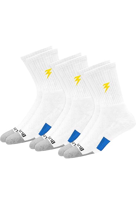 Perfekte Socken für Sport und Alltag! Dieses 6er Pack BLITZSOX Sportsocken in Crew-Länge bietet dir maximalen Komfort. Hergestellt aus hochwertiger gekämmter Baumwolle für natürliche Weichheit und Atmungsaktivität. Besondere Features: 3x langlebiger an Ferse und Zehen, 2x dickere Polsterung für besseren Aufprallschutz, feuchtigkeitsableitendes Mesh für trockene Füße und Fußgewölbe-Kompression zur Reduzierung von Ermüdung. Das elastische Bündchen sitzt perfekt ohne zu verrutschen. Ob beim Laufen, Fitness oder im Büro - diese Socken passen sich jeder Aktivität an. Verhindert Blasen und Reizungen durch die weiche Baumwolle. Ein Must-have für jeden aktiven Mann! Einfach in der Pflege und bleiben auch nach vielen Wäschen formstabil.