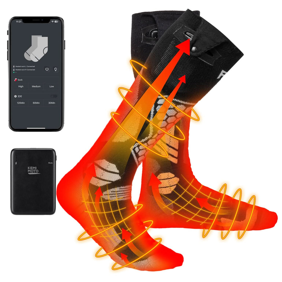 Nie wieder kalte Füße! Die KEMIMOTO Heizsocken sind dein geheime Waffe gegen eiskalte Zehen beim Skifahren, Wandern oder Angeln. Aus weicher Schafwolle mit integrierter Vollfuß-Heizung wärmen sie deine Füße gleichmäßig von den Zehen bis zur Ferse.