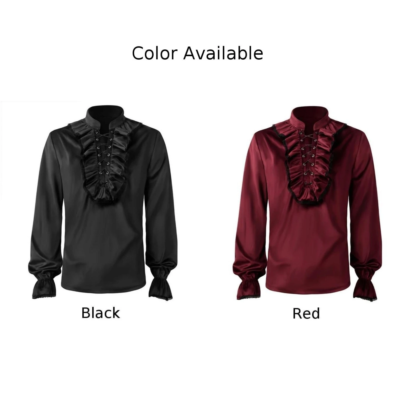 Ab ins Mittelalter! Dieses spitzenbesetzte Herrenhemd im viktorianischen Gothic-Style ist ein absoluter Hingucker. Mit langen Ärmeln, spitzenbesetzten Manschetten und romantischen Rüschen am Jabot-Kragen. Perfekt für Mittelalterfeste, Renaissance-Märkte, Gothic-Partys oder Halloween. Auch als Piratenhemd oder Steampunk-Outfit super geeignet. Aus bequemer Baumwolle gefertigt, damit du auch bei langen Festen gut durchhältst. Das Schnürungsdetail am Kragen gibt dem Hemd diesen authentischen historischen Look. Einfach überziehen und in eine andere Zeit eintauchen - der Hit auf jedem Kostüm-Event!