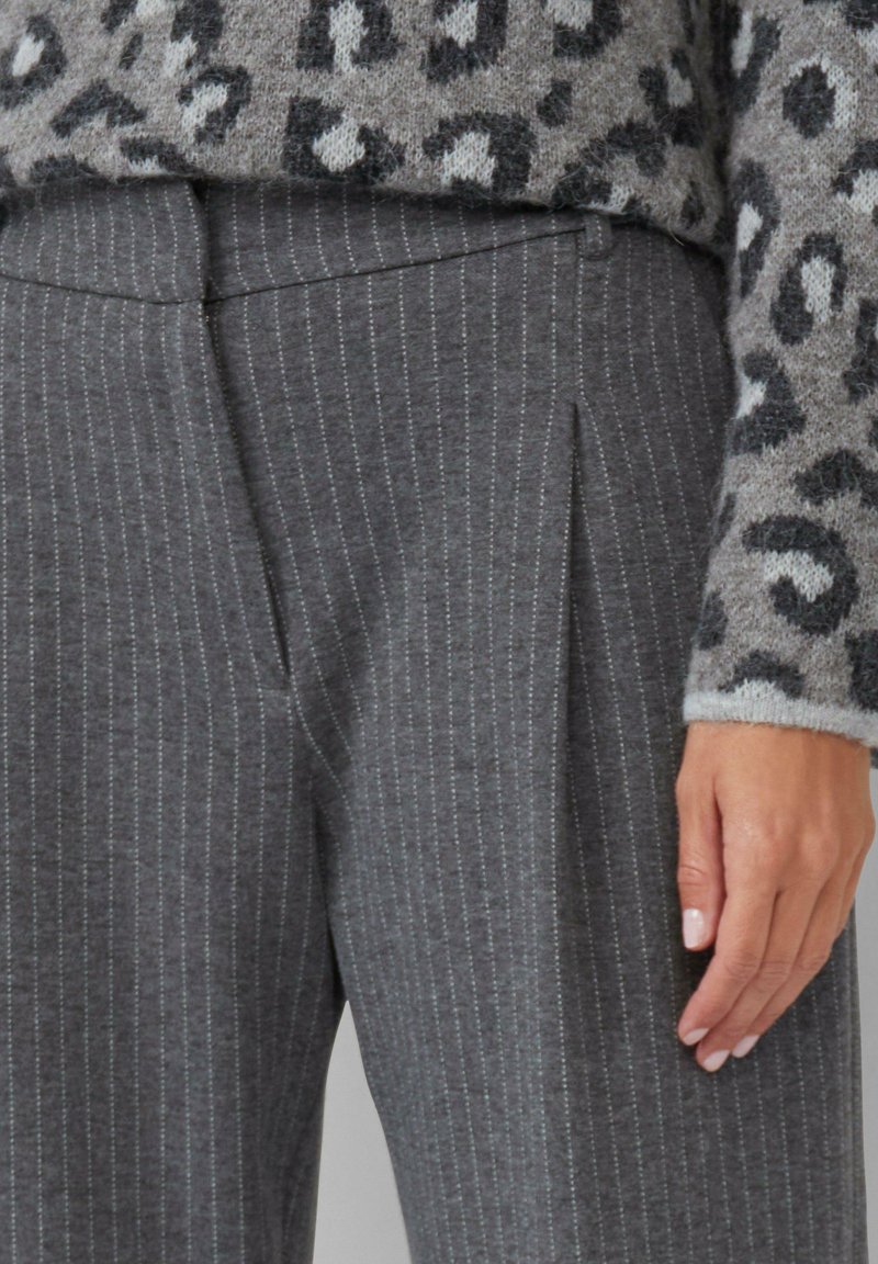 Stylish und trotzdem mega bequem - die s.Oliver High-Rise Hose mit Nadelstreifen! Der hohe Bund und der Wide-Leg Schnitt sind total im Trend. Mit den schicken Bundfalten und den klassischen Nadelstreifen passt sie perfekt ins Büro, aber auch in deine Freizeit. Reißverschluss und Knopf verschließen sie sicher, und die Eingrifftaschen sind super praktisch. Du fühlst dich professionell, aber trotzdem total wohl. Egal ob Meeting, Date oder einfach nur ein Tag in der Stadt - mit dieser Hose bist du perfekt angezogen. Der Stoff fällt schön und die Passform ist einfach traumhaft. So macht gut aussehen Spaß! Perfekt kombinierbar mit Blazern, Blusen oder casual T-Shirts.