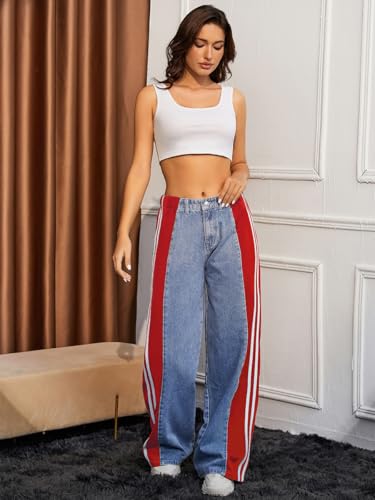 Damen Jeans High Waist Mit Löchern - Baggy Straight Leg Y2K Jeans Stretch Denim