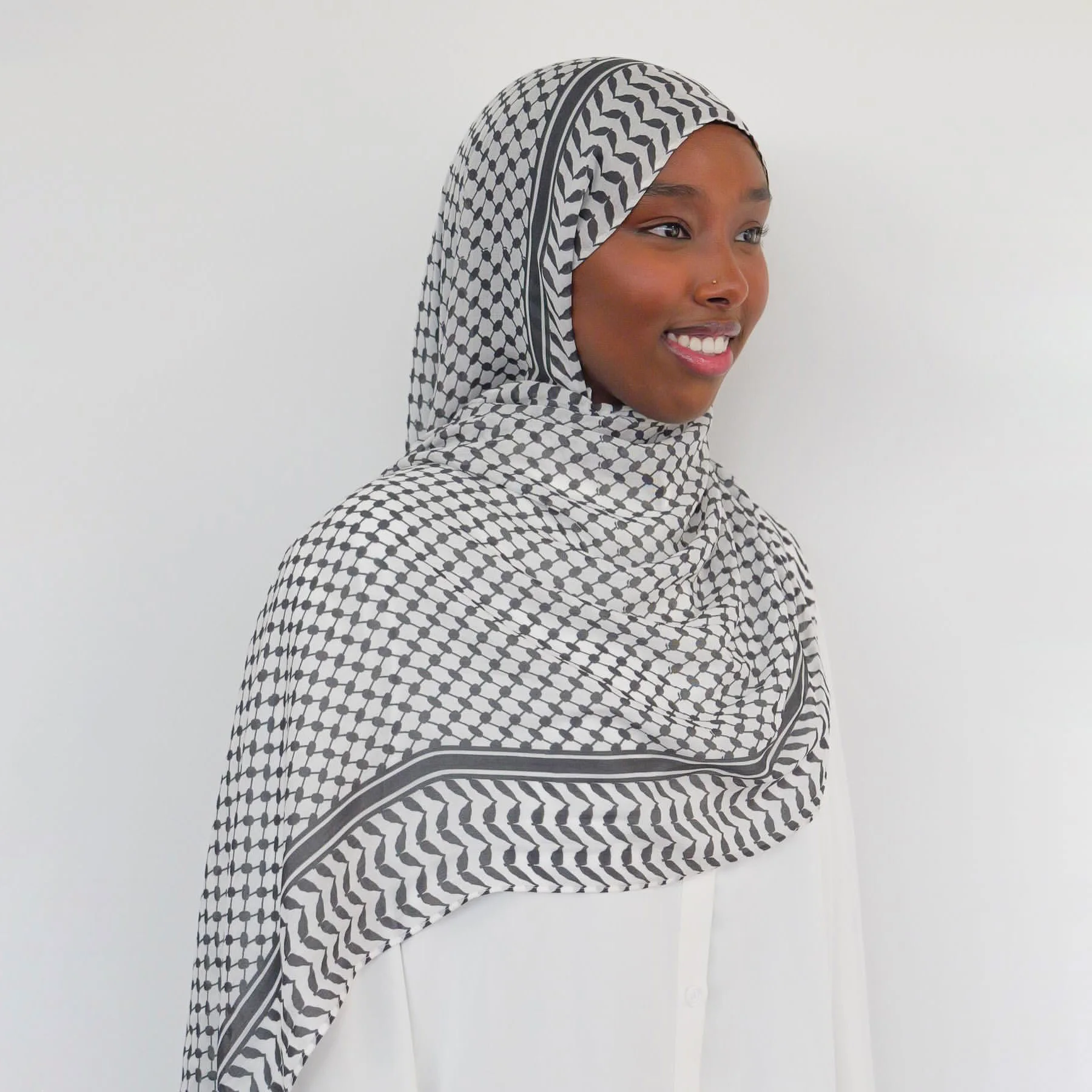 Stilvoll und bedeckt – mit diesem wunderschönen Hijab von OMEWEE! Der bedruckte Chiffon-Schal mit zarten Netz- und Seevogel-Motiven ist superweich, leicht und angenehm zu tragen. Er bedeckt Kopf und Hals zuverlässig und schützt vor Sonne, Wind und Sand. \\n\\nDie Einheitsgröße passt den meisten Frauen und ist vielseitig kombinierbar – ob zum Abaya-Gebetskleid, für den Alltag, Feiern oder Reisen. \\n\\nMaterial: Hochwertiges Chiffon, atmungsaktiv und schnell trocknend. \\nFarbe: Wie abgebildet, mit dekorativem Aufdruck. \\nEin Must-have für modebewusste Muslimas – schick, praktisch und voller Eleganz!