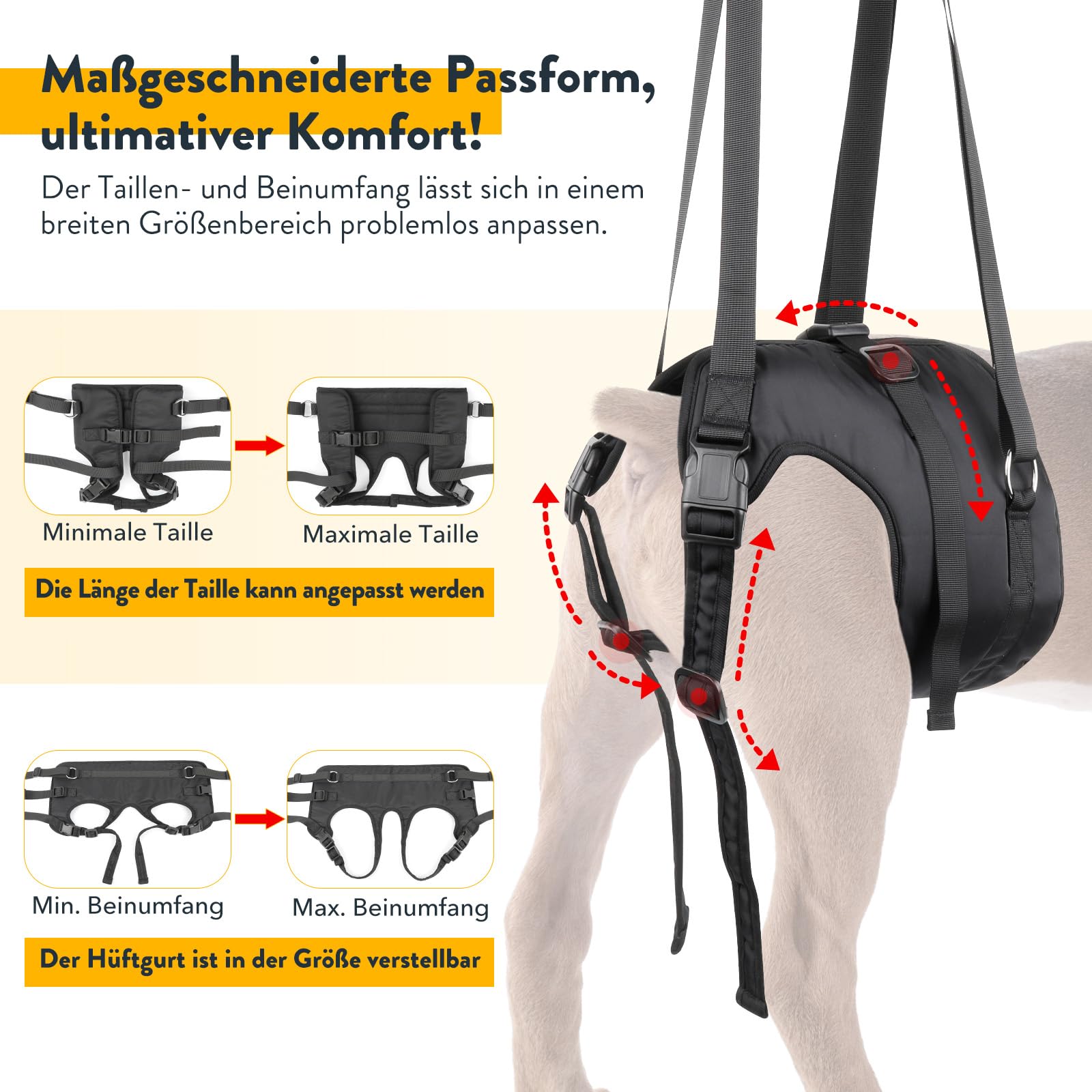 Dein Hund hat Probleme mit den Hinterbeinen? Diese Tragehilfe gibt ihm die Unterstützung, die er braucht! Perfekt für ältere Hunde, nach Operationen oder bei Arthrose - sie hilft beim Aufstehen, Treppensteigen, ins Auto einsteigen oder beim Spaziergang. Die breiten, gepolsterten Gurte verteilen den Druck gleichmäßig und schonen die sensiblen Achselbereiche. Aus robustem Oxford-Stoff und atmungsaktivem Mesh gefertigt, ist sie wasserabweisend und trocknet schnell. Das geniale Pinkel-Öffnung ermöglicht deinem Hund, sein Geschäft zu verrichten ohne das Geschirr abnehmen zu müssen. Die verstellbaren Schultergurte geben dir die Wahl: Entweder du unterstützt deinen Hund beim Gehen oder trägst ihn komplett. Die Knopf-Öffnung macht das Anlegen super einfach, egal wie groß dein Hund ist. Gib deinem vierbeinigen Freund die Mobilität zurück und mach ihm das Leben leichter - mit dieser durchdachten Tragehilfe!