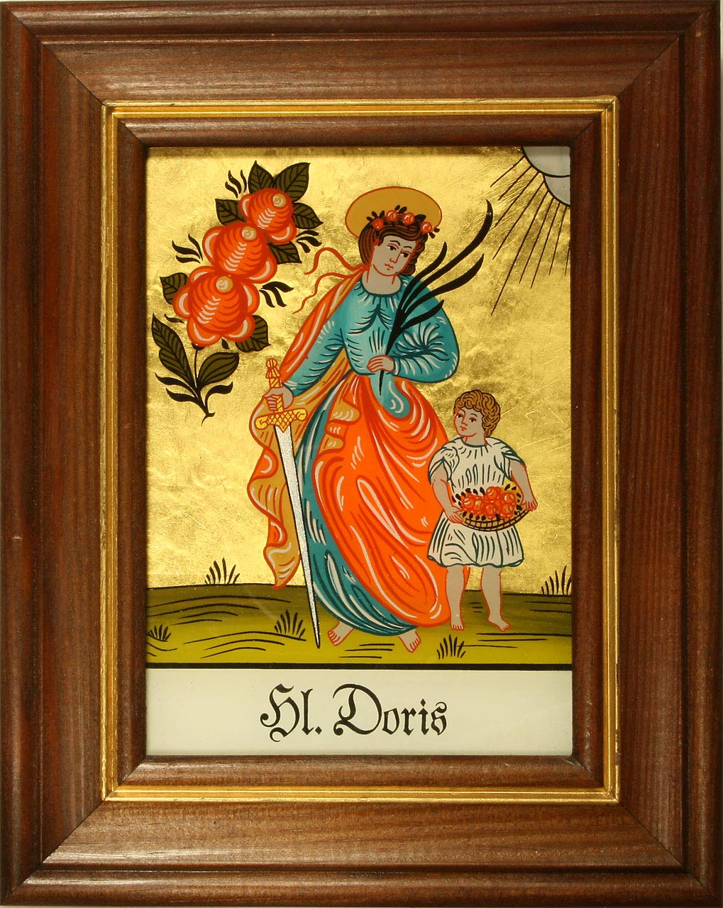 Dieses wunderschöne Hinterglasbild des Heiligen Dominik ist ein echter Blickfang! Jedes Bild wird liebevoll von Hand bemalt - das bedeutet, jedes Exemplar ist ein Unikat mit ganz besonderem Charakter. Der Hintergrund ist mit echtem 24-Karat-Blattgold veredelt, das je nach Lichteinfall ganz unterschiedlich schimmert. Eingefasst in einen hochwertigen, braun gebeizten Holzrahmen wirkt das Bild richtig edel. Mit den Maßen 12,5 x 16 cm ist es perfekt fürs Regal, den Sideboard oder als Wandschmuck. Auf der Rückseite findest du eine Beschreibung zur Legende des Heiligen Dominik - total interessant für alle, die mehr über die Geschichte erfahren wollen. Perfekt als Geschenk zur Taufe, Kommunion, Firmung oder einfach so für religiös interessierte Menschen. Da es hinter Glas ist, lässt es sich super einfach reinigen - einfach mit einem weichen Tuch abwischen. Ein zeitloses Stück, das in keinem religiösen Zuhause fehlen sollte!