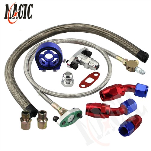 Hey Turbo-Tuner! Dieses Ölversorgung-Set ist genau das, was dein Turbolader für ein langes Leben braucht! Aus CNC-gefrästem Aluminium und geflochtenen Edelstahlleitungen - absolute Profiqualität!