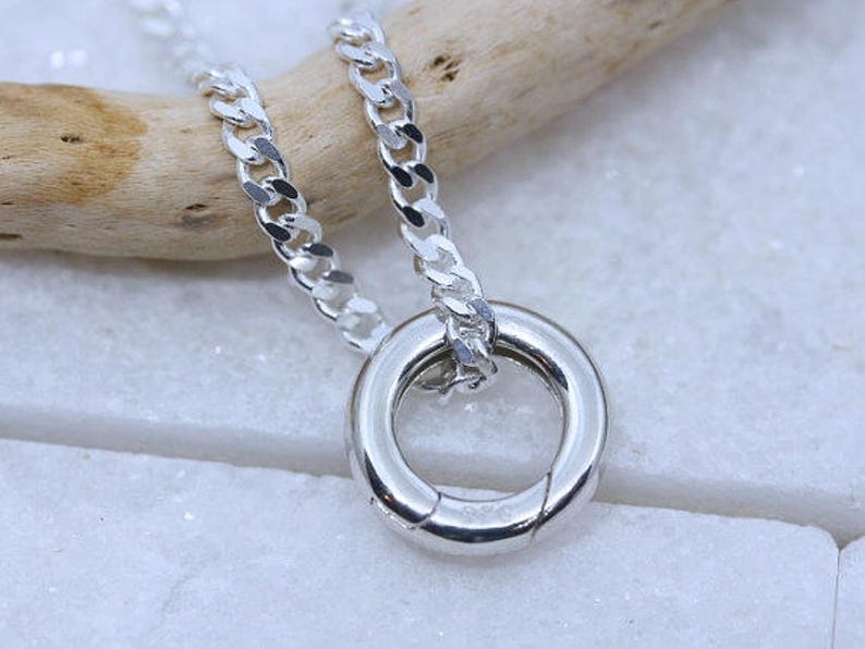 Das coole Feature: Du musst die Kette nicht mal abnehmen um den Ring zu befestigen! Einfach durch die Öffnung fädeln und fertig. Der Ring sitzt bombenfest und geht nicht verloren. Genial, oder?