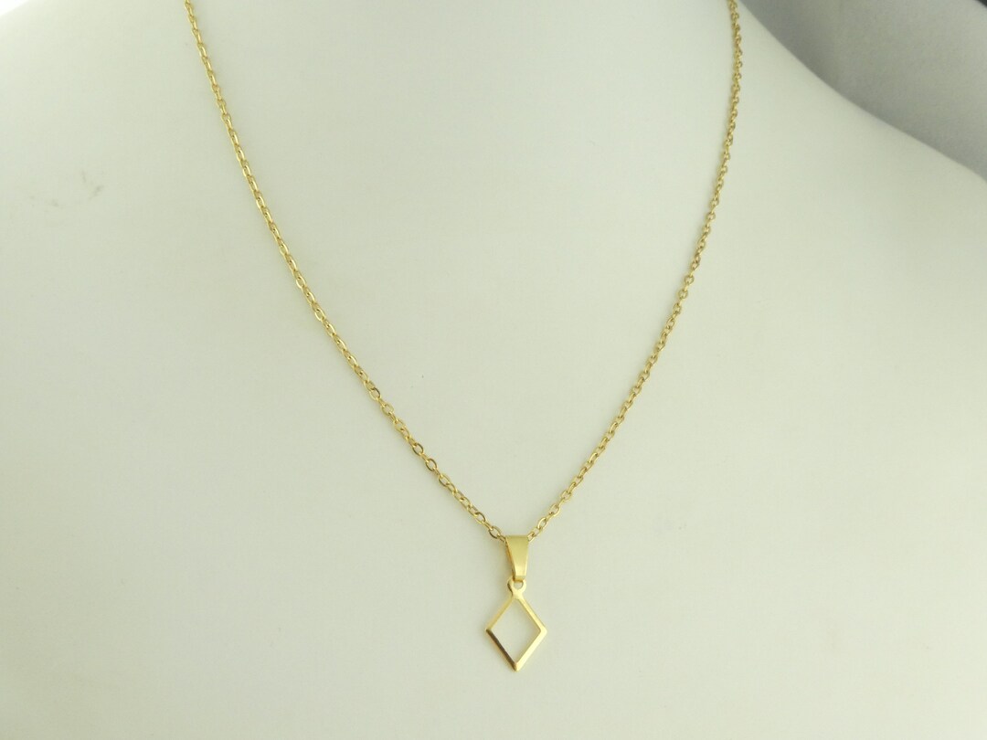 Das Design ist total stylish: Eine geometrische Raute aus Edelstahl, die modern und gleichzeitig vintage wirkt. Die Kette ist 38,5 cm lang und hat sogar 6,7 cm Verlängerung - passt also fast jeder! Der Anhänger ist 36,5 mm lang und 24 mm breit - groß genug für die meisten Ringe.