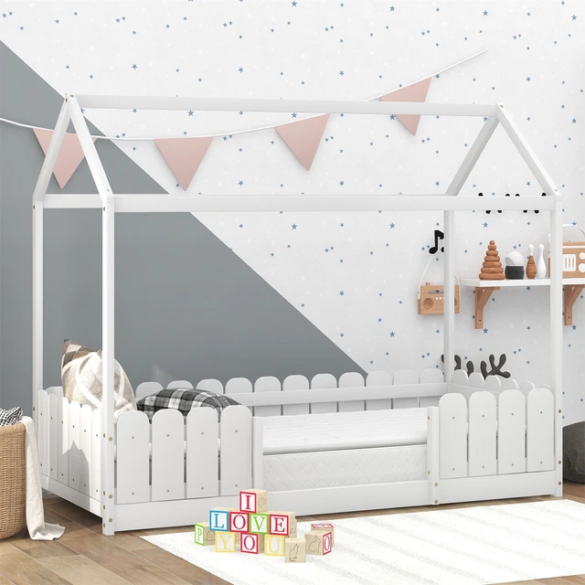 • Kinder Hochbett 90x200 Weiß - Massivholz Kiefer Mit Rausfallschutz