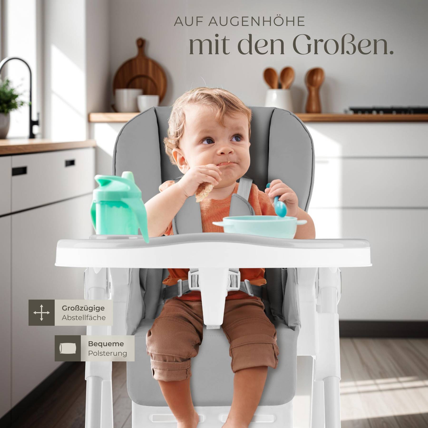 Dein Kleines sitzt im Hochstuhl und die Füße baumeln in der Luft? Das ist nicht nur unbequem, sondern auf Dauer auch nicht gut für die Haltung. Diese höhenverstellbare Fußstütze aus Holz schafft Abhilfe! Mit ca. 50 cm Länge und 8,2 cm Breite passt sie perfekt zu den meisten Hochstühlen aus Hartplastik, Metall oder Holz. Die vier Gummi-Ringe sorgen für einen rutschfesten Halt und ermöglichen eine flexible Anpassung an die Höhe - einfach die Ringe verschieben und schon sitzt dein Kind bequem und ergonomisch richtig. Die wasserabweisende Oberfläche lässt sich super einfach mit einem feuchten Lappen reinigen. Besonders praktisch: Die signalrot markierte Schnelllösevorrichtung sorgt für zusätzliche Sicherheit. So kann dein Kind beim Essen oder Spielen entspannt sitzen und hat immer den nötigen Halt für die Füßchen. Einfach montiert und schon wird der Hochstuhl zum gemütlichen Platz für deinen kleinen Schatz!