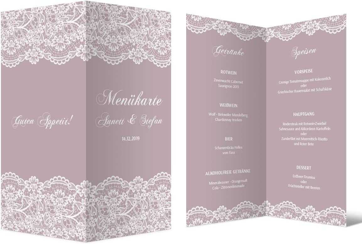Mach deine Hochzeit zu einem unvergesslichen Erlebnis mit diesen wunderschön gestalteten Menükarten! Im 10er-Set liefern wir dir individuell bedruckte Klappkarten im Format DIN Lang (geschlossen 99x210 mm, offen 198x210 mm). Gedruckt auf hochwertigem 300g/qm Papier im romantischen Holz-Lichtgirlande-Design. Nach deiner Bestellung erhältst du Zugang zu unserem Designstudio, wo du deine Texte einfach eingibst. Unser Grafik-Team erstellt innerhalb eines Werktages eine Vorschau zur Freigabe. Bei Freigabe bis 14:00 Uhr erfolgt Produktion und Versand noch am selben Tag - in nur 1-2 Tagen hast du die Karten in Händen. Passend dazu findest du in unserem Shop weitere Hochzeitspapeterie im gleichen Motiv. Perfekt für eine stimmungsvolle und persönliche Tischdekoration!