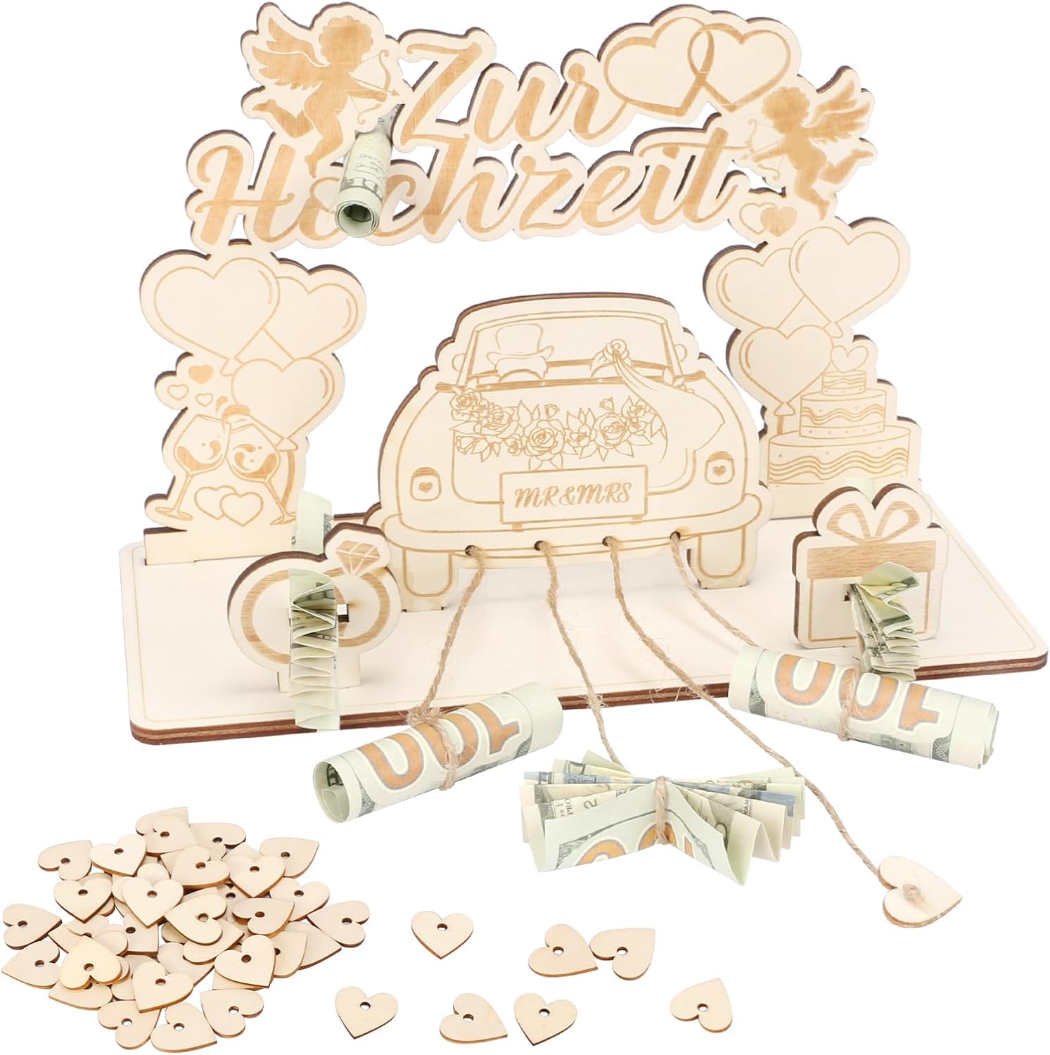 Das besondere Geschenk fürs Brautpaar! Dieser Geldbaum in Lebensbaum-Form macht Geldgeschenke zum Hingucker. Mit 22x22cm Größe und personalisierbaren Elementen. Inklusive LED-Lichterkette für romantische Atmosphäre. Aus stabilem Holz gefertigt, hält Geldscheine sicher. Perfekt für Hochzeiten, Geburtstage oder Jubiläen. Einfach Betrag und Wünsche platzieren. Wird mit Holz-Ballons und Clips geliefert. Verschenke Geld mal anders - mit Stil und Persönlichkeit!