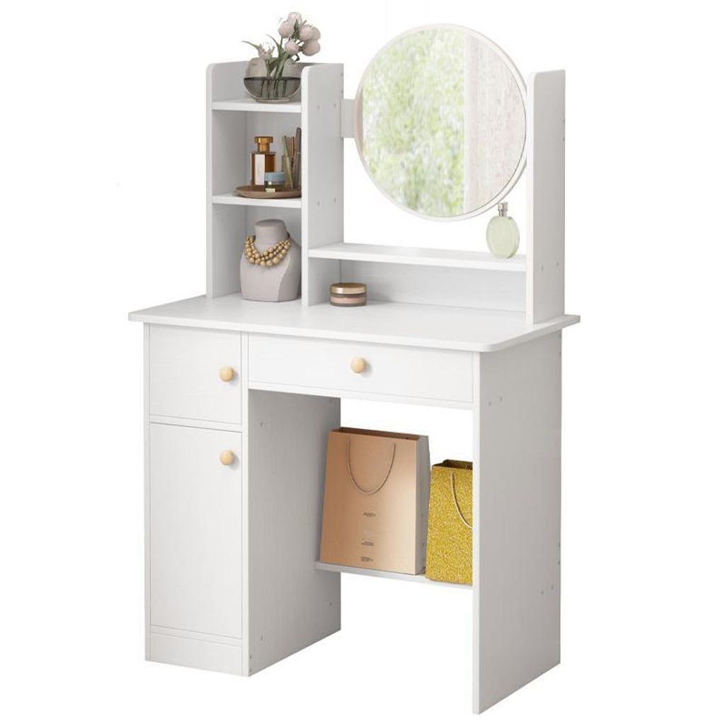 Boah, dieser Schminktisch ist ja mal richtig stylisch! Aus robustem Massivholz im Vintage-Design - sieht einfach edel aus im Schlafzimmer oder Ankleidezimmer. Mit praktischer großer Schublade für all deine Kosmetik-Sachen - Make-up, Schmuck, Pflegeprodukte, alles hat seinen Platz. Und das Beste: Der Tisch kommt komplett montiert - kein lästiges Zusammenbauen, einfach auspacken und sofort nutzbar! Ohne Spiegel - perfekt wenn du schon einen Wandspiegel hast oder den Tisch flexibel nutzen willst. Der passende Hocker ist natürlich inklusive - super bequem zum Draufsitzen während du dich schminkst. Ob als Frisiertisch, Schminkkommode oder einfach als dekoratives Möbelstück - dieser Tisch macht in jedem Raum was her. Qualitativ absolut hochwertig - solide Massivholz-Verarbeitung die lange hält. Einfach hinstellen und dich jeden Tag wie im Beauty-Salon fühlen! Absolut empfehlenswert für alle, die Ordnung und Stil lieben.