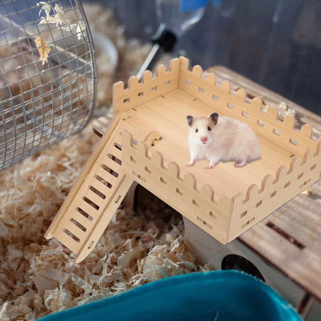 Diese süße Hamster-Kletterplattform ist der Hit für alle kleinen Nager! Aus hochwertigem, bei Hitze getrocknetem Holz - komplett sicher und umweltfreundlich für deine Haustiere.\\n\\nDas zweistöckige Design bietet deinem Hamster, Chinchilla oder deiner Rennmaus so viele Möglichkeiten: Verstecken, Schlafen, Klettern, Spielen... da wird's garantiert nicht langweilig!\\n\\nDie integrierte Leiter trainiert die Kletterfähigkeiten und befriedigt den natürlichen Spieltrieb. So bleiben deine kleinen Lieblinge aktiv und fit.\\n\\nMontage? Super einfach! Keine komplizierten Werkzeuge nötig - einfach zusammenstecken und in den Käfig stellen. Passt in die meisten Käfigtypen. Wenn du sie mal nicht brauchst, lässt sie sich platzsparend zerlegen.\\n\\nPerfekt für Hamster, Chinchillas, Rennmäuse und andere kleine Nager. Gib deinem Haustier damit seinen eigenen kleinen Abenteuerspielplatz - der macht nicht nur Spaß, sondern ist auch noch gut für die Gesundheit!